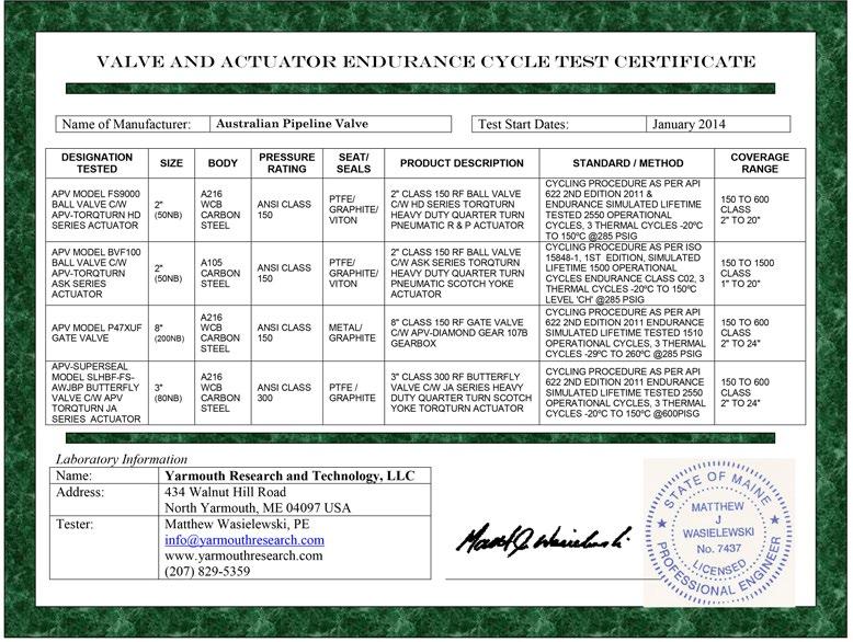 a rough guide. Australian Pipeline Valve recommends that customers’ engineers analyse