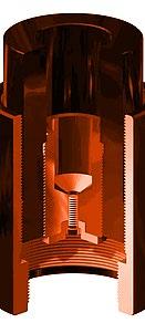 A polished bronze disc with replaceable O-Ring (Viton®/NBR/EPDM etc.) assures bubble-tight shut off. Maximum disc diameter has a greater free flow area.
