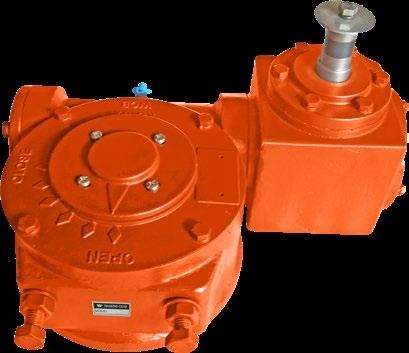 • Reliable rugged worm gear boxes with position indicators and adjustable Travel/stop screws for 1/4 turn ball valves, plug valves etc.