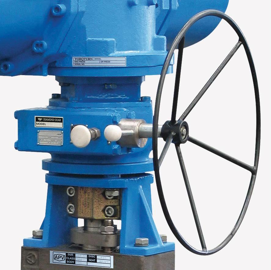 MOS declutchable gear box provides reliable manual positioning of valves, allowing existing pneumatic or hydraulic rotary actuators to be over ridden. All Diamond Gear MOS gearboxes are suitable for outdoor use. The self-locking rugged design allows easy & safe operation, positive manual positioning & long life.