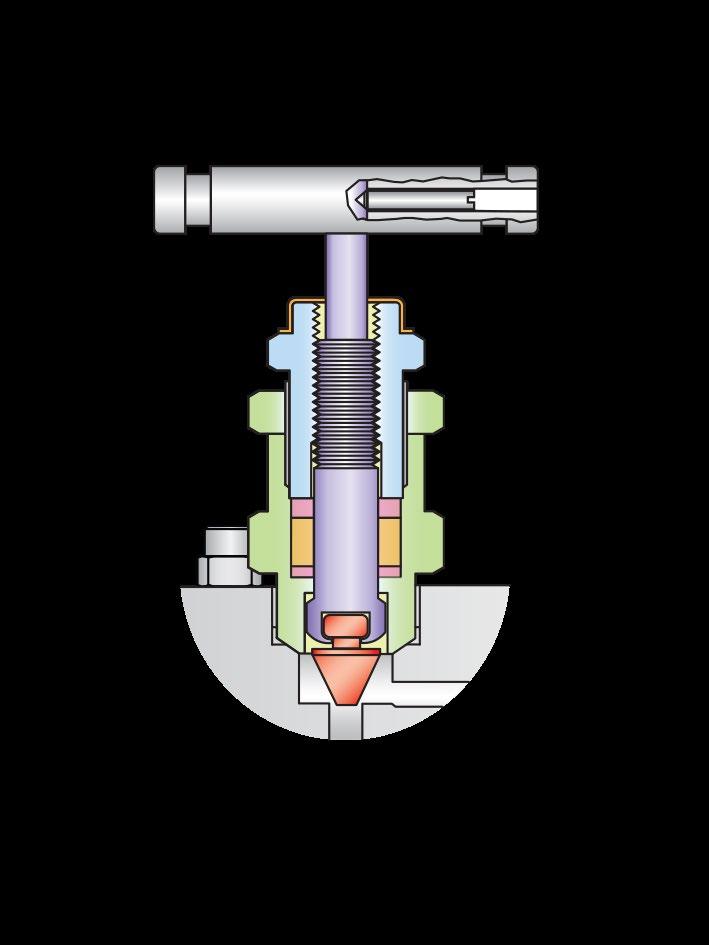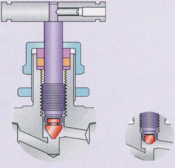 One piece bar stock construction with full material traceability. Back seating of stems in a fully open position prevents stem back out. All types of valves have self centring, non rotating needle on the valve seat, alternative seating to choose for every application requiring bubble tight shut off. Safety Stop Pin, 316 stainless steel stopper prevents detachment of the bonnet from the body due to vibration.