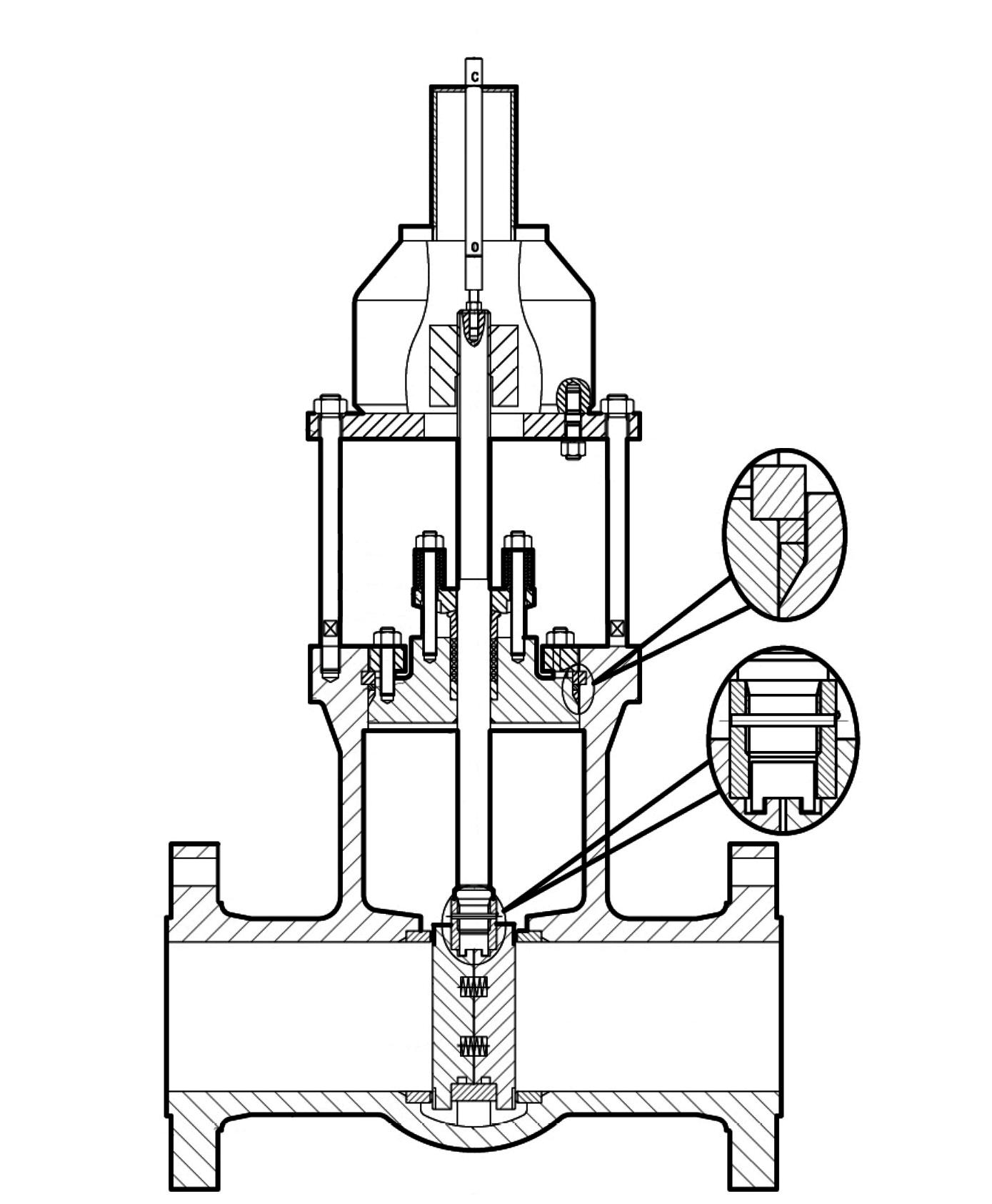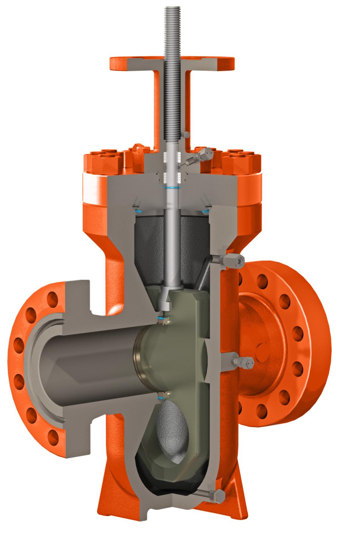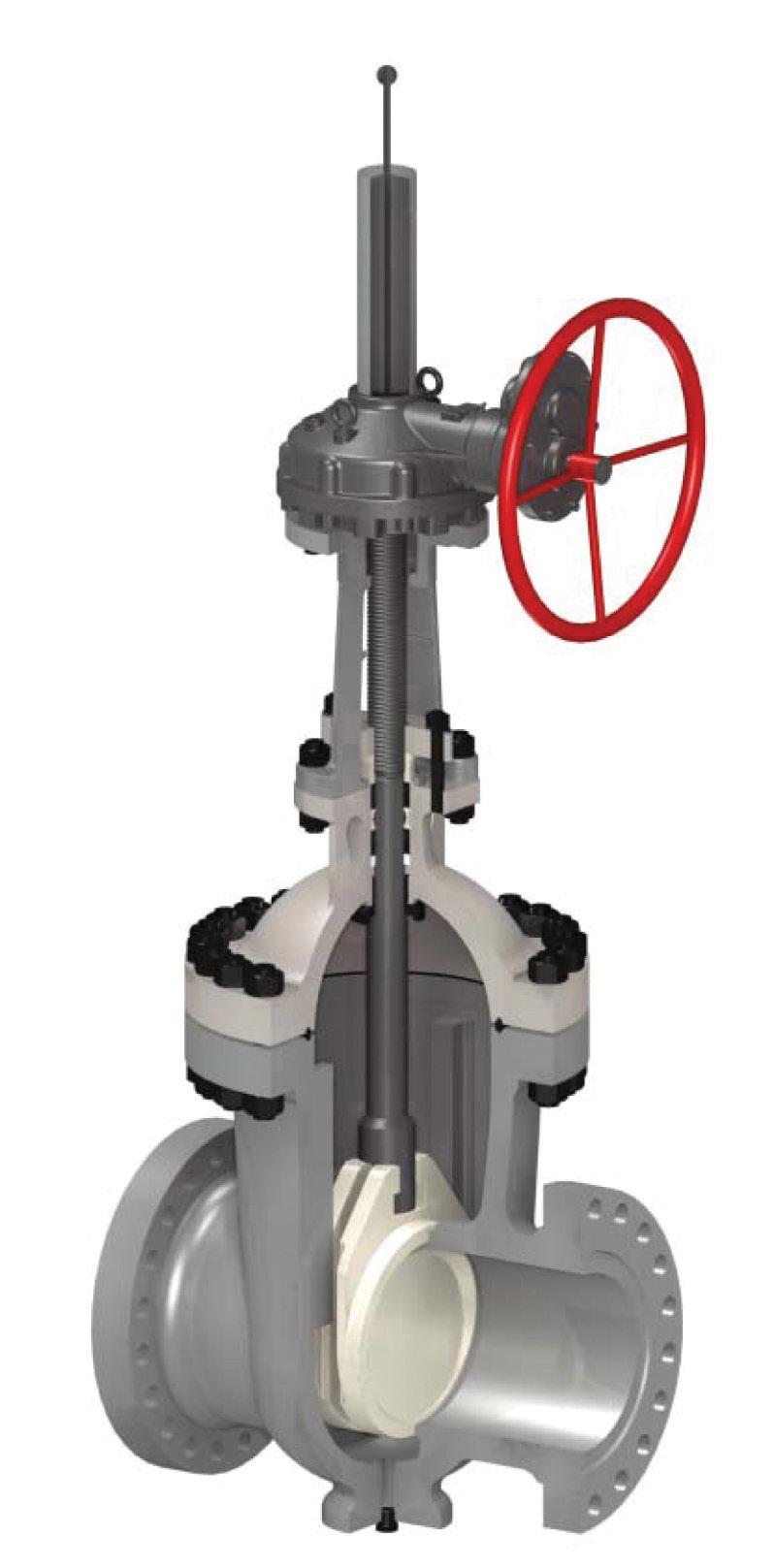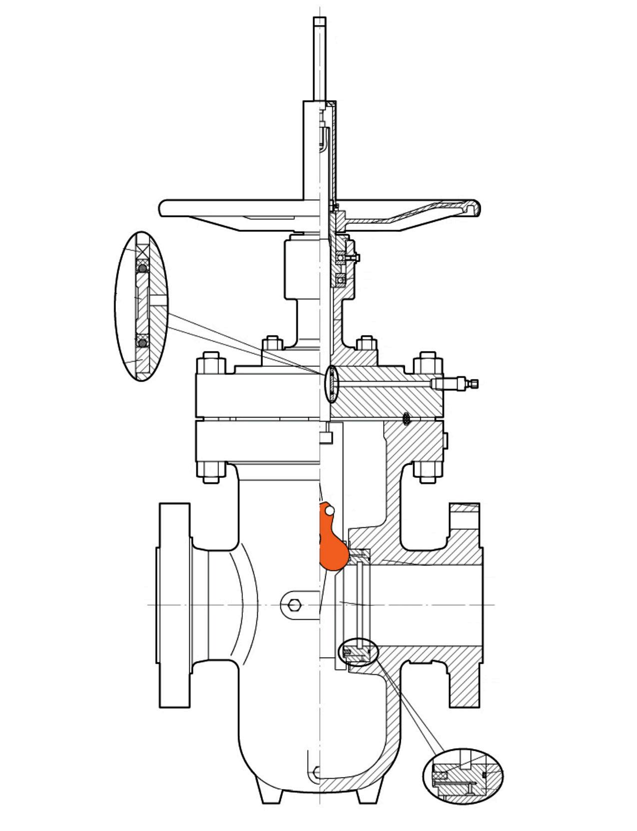 Full body wedge guides allow correct wedge alignment. Yoke sleeve with bearings reduce torque for easy operation. Seat rings allow easy access for maintenance and packing replacement is simple. Seat face 13Cr hardfaced, ground and lapped to a Ra 0.4~0.8 µm finish. Wedge is ground and lapped to a Ra 0.4~0.8 µm finish and tightly guided to prevent dragging and seat damage. Non-rotating stem with precision Acme threads and burnished finish. Rotating stem nut is austenitic ductile iron Gr. D-2C renewable.