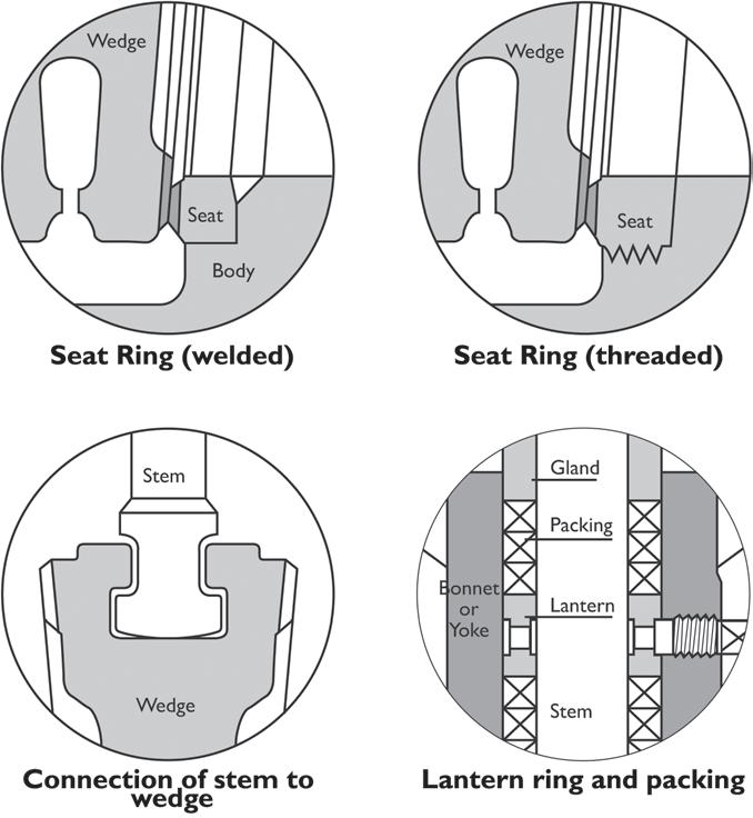 Gate Valves are optionally available with lantern rings. These rings along with double packing provide a leak-off connection. Alongside are illustrations of lantern rings as well as disc connection. Fugitive emission packing sets do normally need a lantern ring.