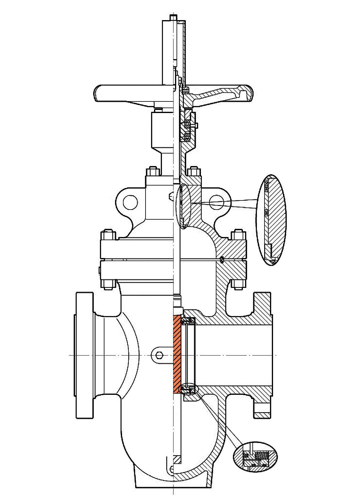 All gate valves are available with optional PTFE seat rings. The moulded PTFE ring is bonded into a seat ring groove in the face for maximum service life. This design is excellent for lower temperature service where tight shutoff is required.