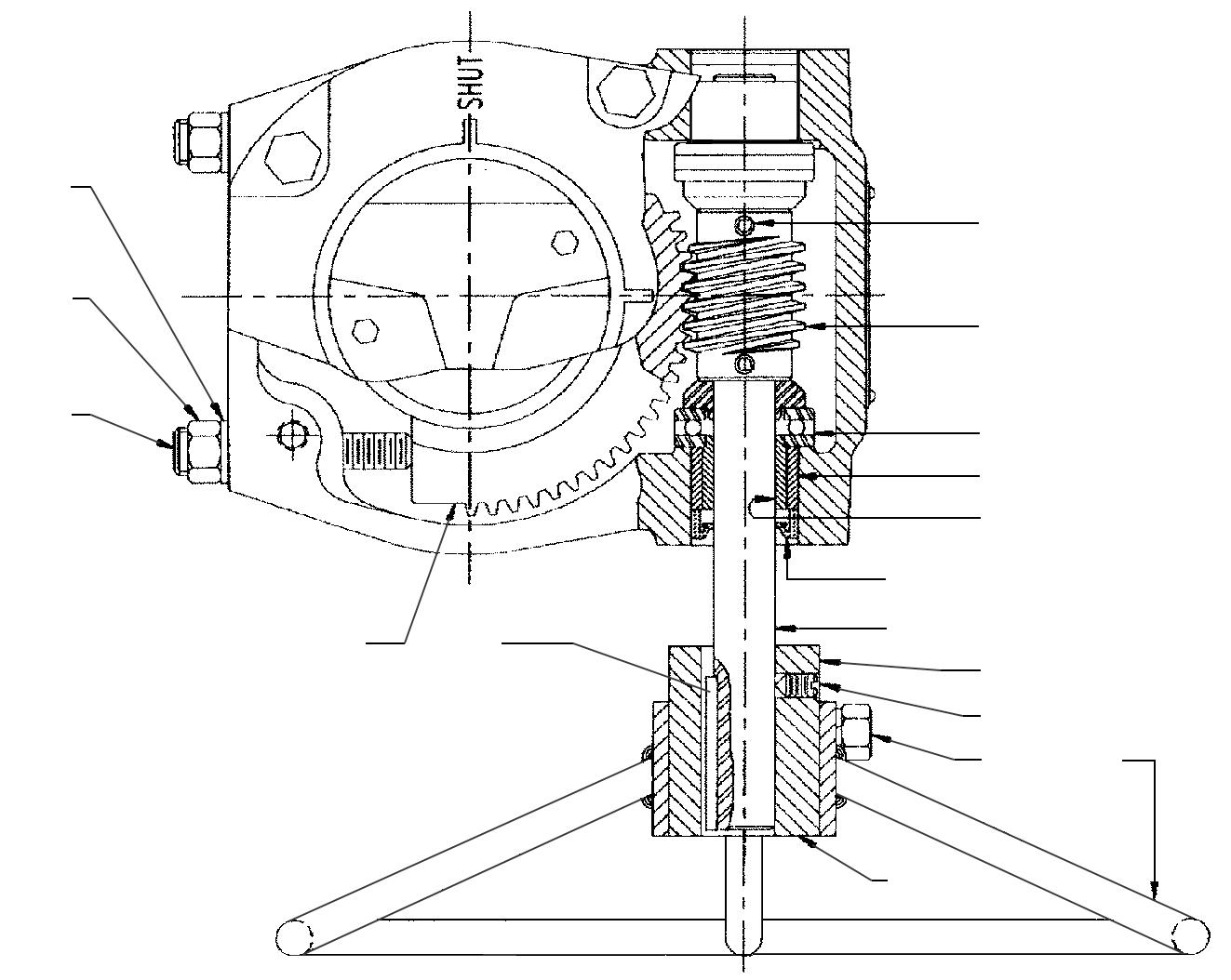 1. Move the valve to the fully closed position. Set the adjustment bolt clockwise until it makes contact with the segment in the gear then lock the adjustment screw in place with the lock nut.
