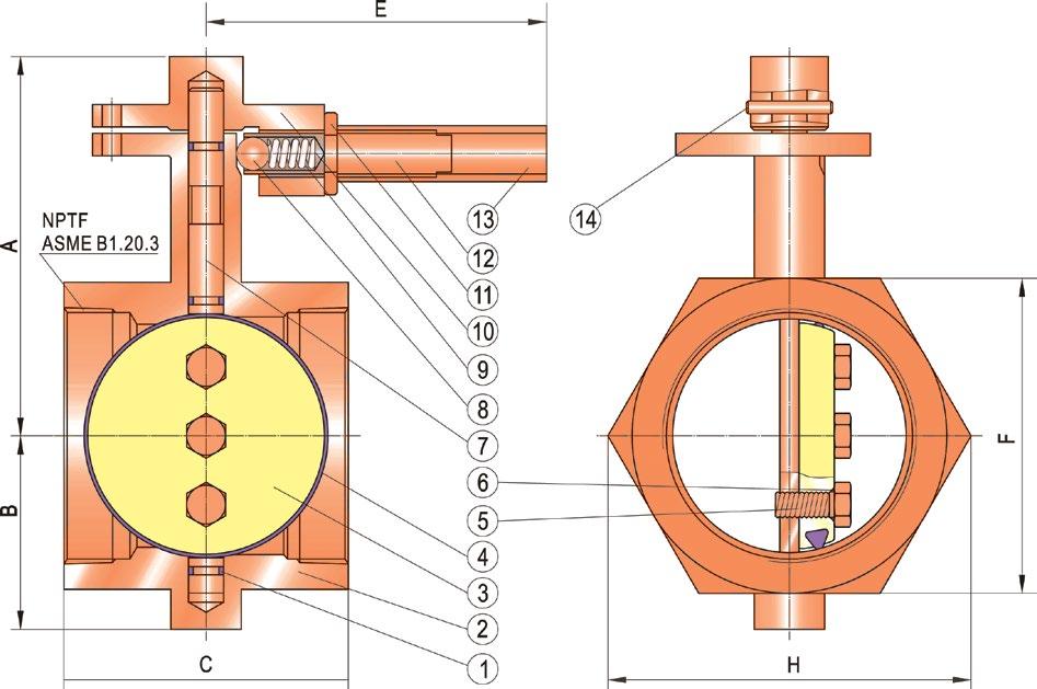 SCREWED ENDS BUTTERFLY VALVE 14 BAR