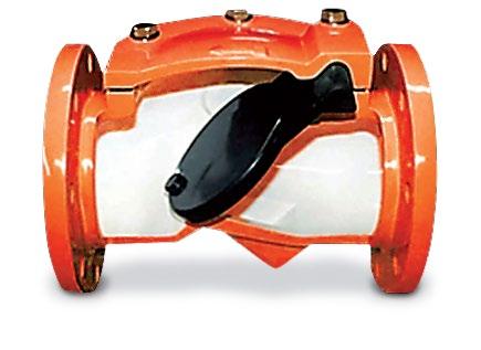 100% full flow area. Fusion Bonded Epoxy. Resilient lined body optional. Simple maintenance-free design, low headloss and non-slam characteristics. The valve’s smooth, unresricted full flow design makes it an excellent choice for slurries and slidge , even in vertical flow up applications.