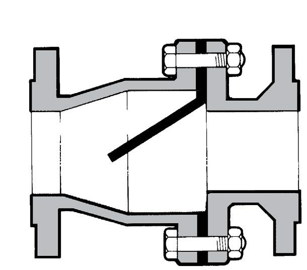 Cast Iron or rubber lined cast iron body, semi flexible disc, swing check. Flow reversal of plus 0.35 bar. Design BS 5158, BSEN 12334.