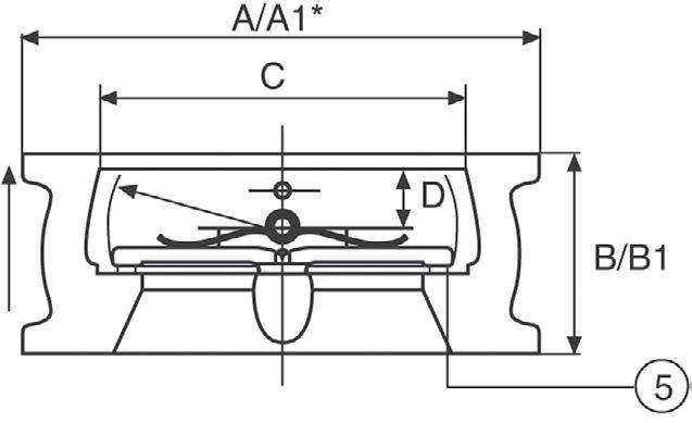 This cracking pressure is less than 14 kPa (2 psi) across most of the range (larger sizes can be more). As flow increases, the plates then pivot against the spring pressure. Since the heels have already lifted off the seat there is no scrub or wear, either on the seat, body or plate seating surfaces. A pressure of only 28 kPa (4 psi) is required to keep the plates fully open (up to 400 NB).