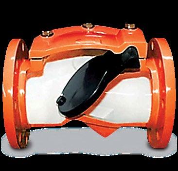 100% full flow area. Fusion Bonded Epoxy. Resilient lined body optional. Simple maintenance-free design, low headloss and non-slam characteristics. The valve’s smooth, unresricted full flow design makes it an excellent choice for slurries and slidge , even in vertical flow up applications.