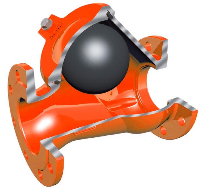 These full port ball checks with uninterrupted flow (equal to bore of pipe) are resistant to clogging and are ideal for wastewater, stormwater treatment, pumping dirty fluids. There is no accumulation of debris/deposits and the valve can be cleaned in-line without removal of entire valve and other neutral liquid applications. They can be used in horizontal & vertical service. BC series check valves have a low head loss and are self-cleaning due to the rotating ball.