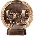 HIGH RELIEF CIRCULAR BRASS PLATE AWARDS Bronze finish with gold highlights. 7-1/2” tall and the price includes a laser engraved plate approximately 3/4” x 2-1/2”