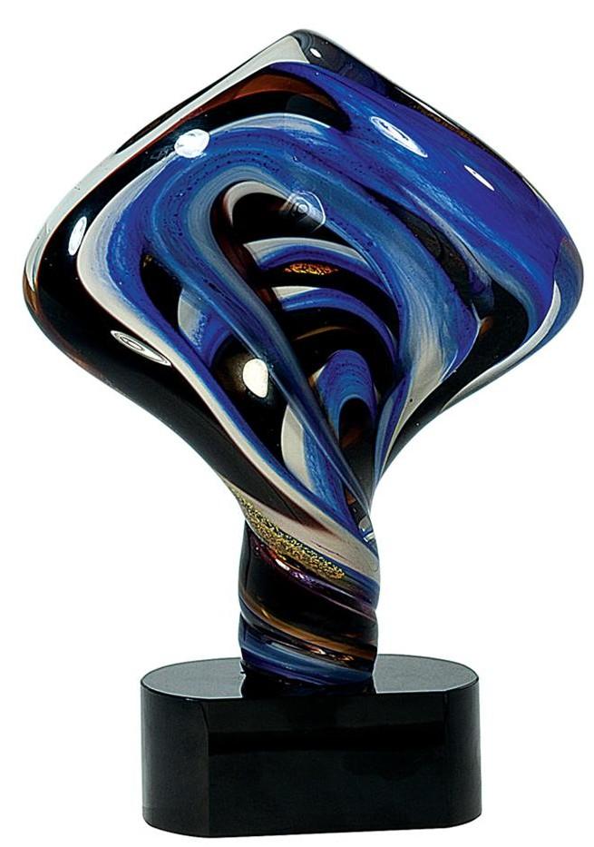 Premier Crystal and Glass Art is handmade. Each piece may vary in coloration and size. It is mounted on a base and is individually packaged in a lined gift box. Price includes an engraved plate.