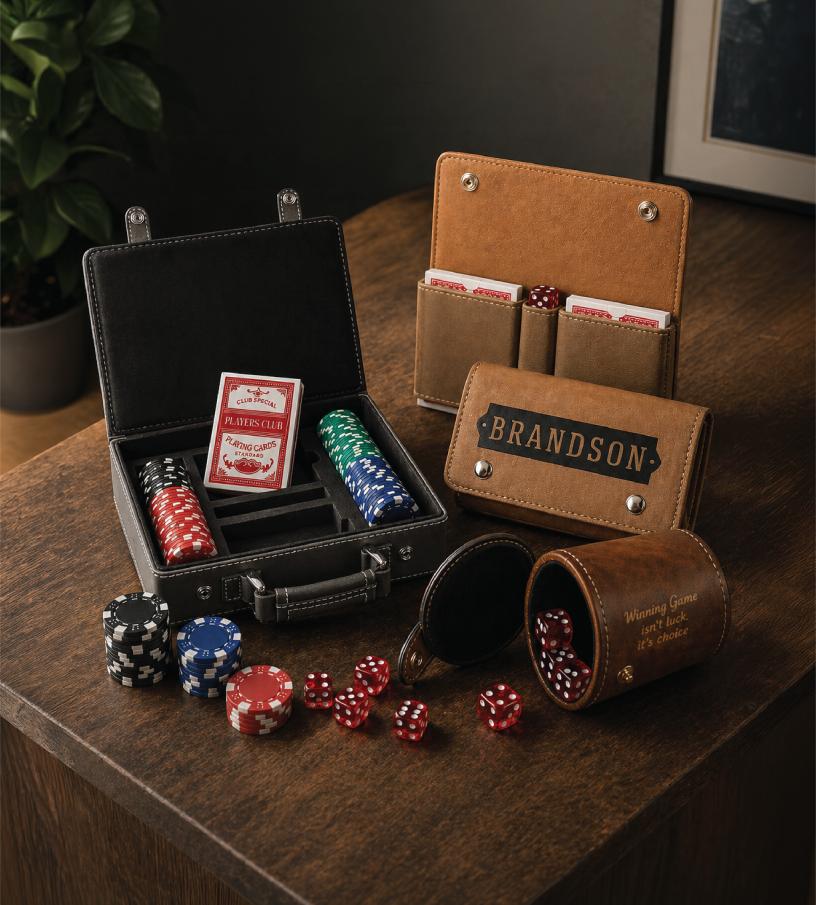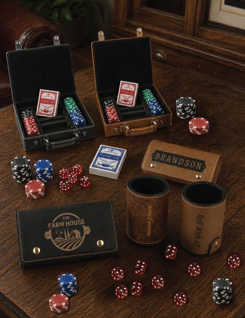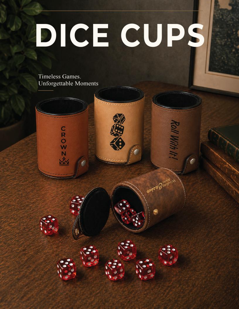 & Gold Leatherette Dice Cup w/ 5 Dice