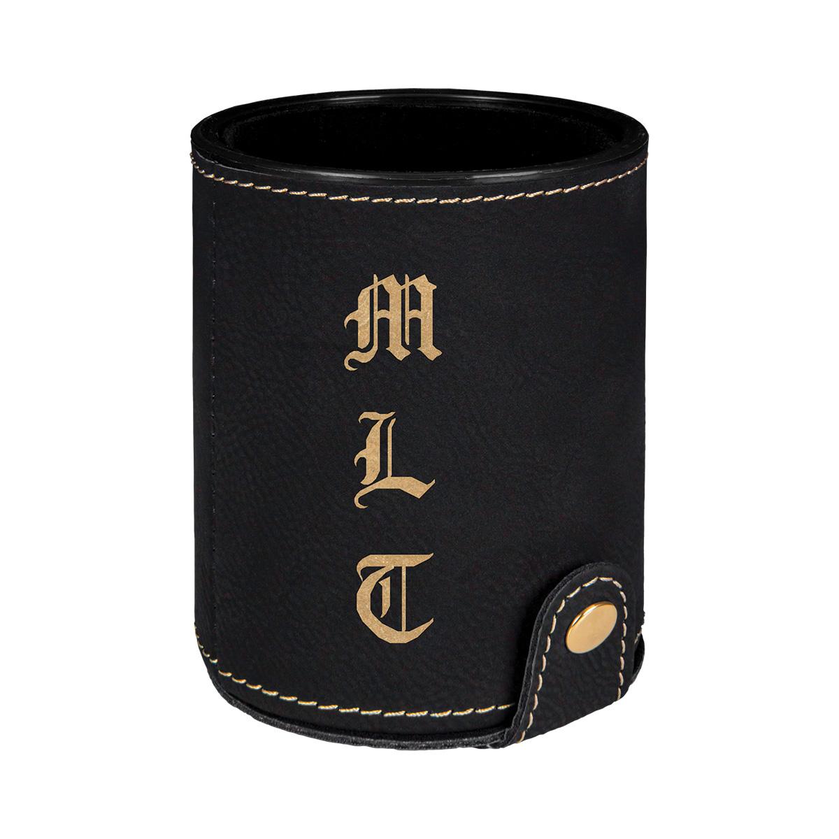 Black & Gold Leatherette Dice Cup w/ 5 Dice