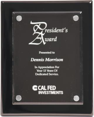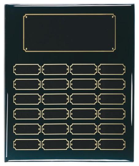 Black Piano Finish Perpetual Plaques are completely assembled with screws. All plaque prices include one laser engraved Header Plate and one laser engraved Perpetual Plate. Engraving of additional Perpetual Plates are $6.00(V). Repeat setup fee: $10(V).