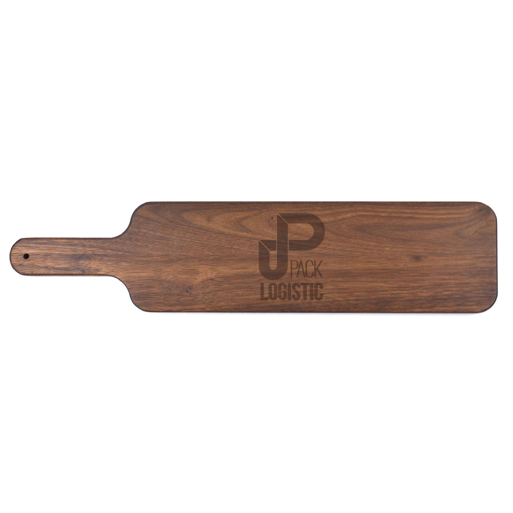 This natural 6" x 14 1/2" walnut paddle cutting board makes an impeccable cutting board that doubles as a gorgeous serving board. This product is laser engrav…