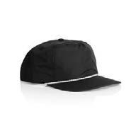 Single panel at front, contrast matt nylon rope at front of crown adjustable plastic fastener, tonal under-peak lining