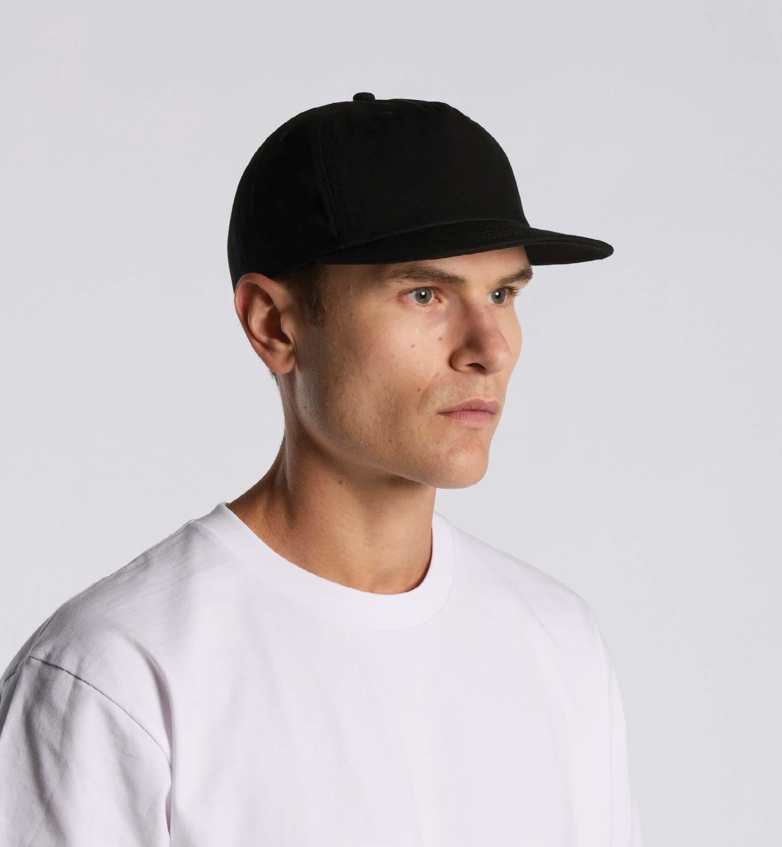 Our Finn franchise caps are five panel low profile unstructured styles with strap back closures. The fit is relatively shallow. This franchise sports active aesthetics and features.