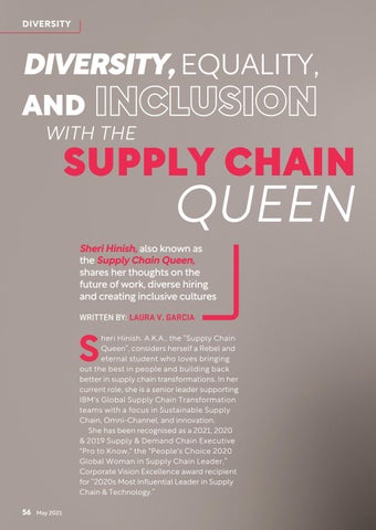 Sheri Hinish, also known as the Supply Chain Queen, shares her thoughts on the future of work, diverse hiring and creating inclusive cultures WRITTEN BY: LAURA V. GARCIA
