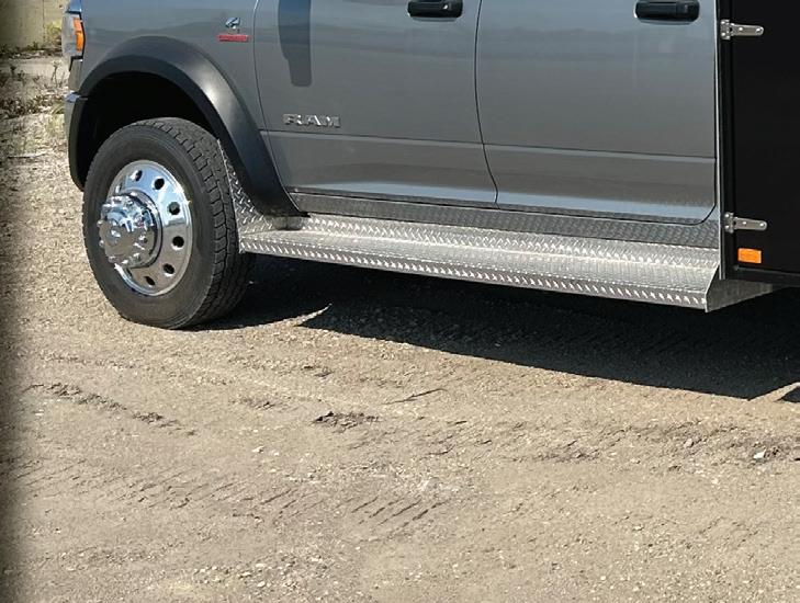 At the rear of the trailer, one notable change is the redesigned ladder system. A fold-down ladder has been introduced. This ladder features a low entry point and an angled configuration for improved accessibility and ease of climbing. When not in use, the ladder folds away.