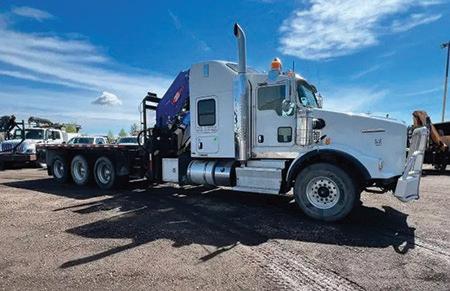 2007 Kenworth C500B. Eng brake, 4 spd aux, dbl diff lock, dbl frame, RB over WB susp, 36000 lb frt, SISU fr2832s planetaries, 360 in. wb, 26 ft 6 in. x 9 ft 6 in. bed, centre roll, live roll, frame gin poles, Tulsa 70 ton hyd winch, Tulsa 20 ton hyd winch, flip-over 5th wheel, 14,474 hours, 233,074 kms, $249,900. Brandt Transportation PHONE: 888-2BRANDT