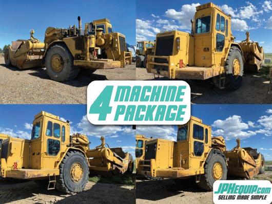(4) CAT 631D MOTOR SCRAPERS, (1979, 1980 & 2x1984), STK# 8757 BP, 450 hp, 31 mph Max Fwd. Spd., 31yd3 Heaped & 21yd3 Struck Cap., 19” Max Cut Depth & 11’ Width, Hours Ranging from 4,693 – 24,133, *Total Package Price for All 4 Units.