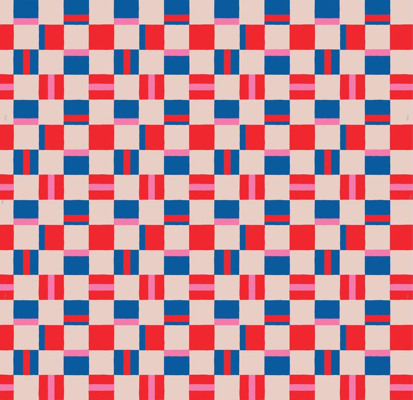 Meet Kate! May 3rd saw the launch of the very first Kate Capone wallpaper collection at SUPPLY The collection is filled with vibrant colors, playful geometrics, and a whole lot of joy! The existing collection features three prints, each in multiple colorways: the charmingly polka-dotty Play Day, the tinybookshelf-inspired Nookshelf, and New Checker - a modern take on the classic checkerboard pattern