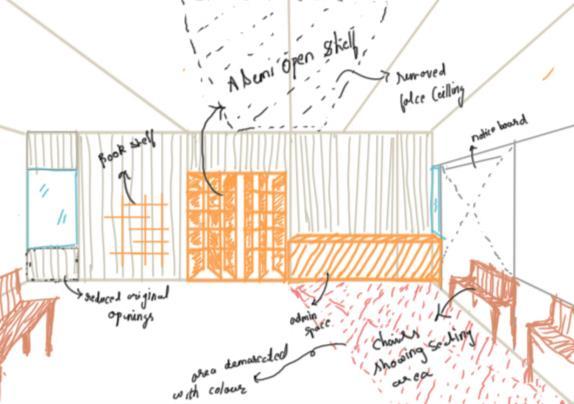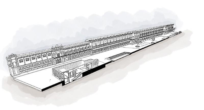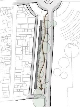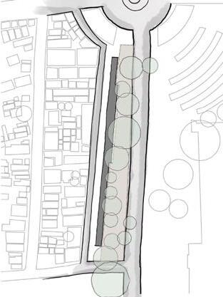 embracing the fascade of Lansdowne builidng CONSIDERED SITE Roads connect to a major around about KR circle and also the city bus stand. MAJOR ROADS The site is long linear path held between main road and fascade of building NATURE OF SITE Break down the linear site with grid lines extended from the fascade for zoning DESIGN POSSIBLITIES Fascade being one of the importent feature of lansdowne building, intervension should not disturn the view. This can be done by Ground level modulation DESIGN POSSIBLITIES
