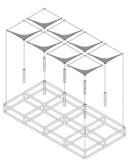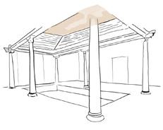 The roofing system, in which it does the task of blocking harsh sunlight, wind, and rain at times. When required, at specified amount of water can be sent through it by the mechanism of flaps opening and closing. When opened, four flaps on the four cardinal directions can be mechanically controlled, letting in light and channeling wind, and even acting as a rain water collecting component