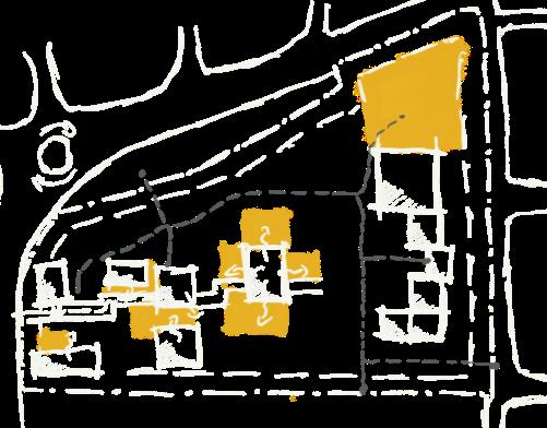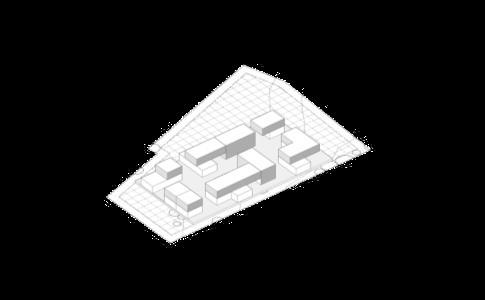 1. Considering the grid pattern here and using a rectangular space for designing instead of splitting the built all over the site for climatic concerns