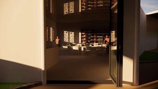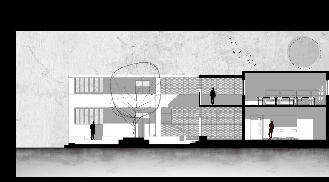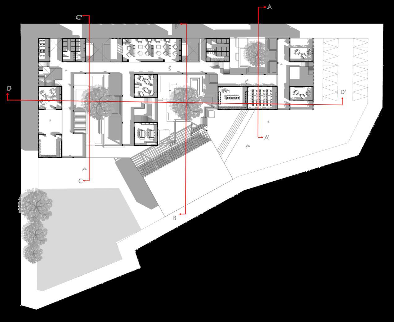 The design included relationships between open and closed courts and connections across spaces to create a co-learning environment reminiscent to Rabindranath Tagore's "Shantiniketan."