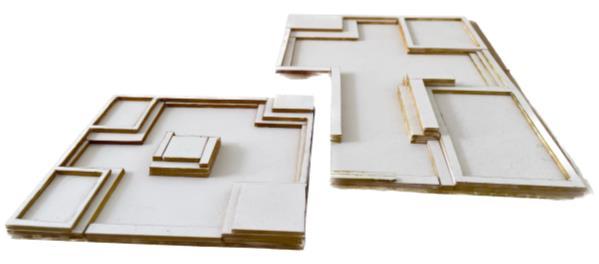 The goal of the design was to create a more hospitable and user-friendly area for our college's existing gallery and lobby space. Four of us developed the idea to abstract our college's "open floor plan" reputation.