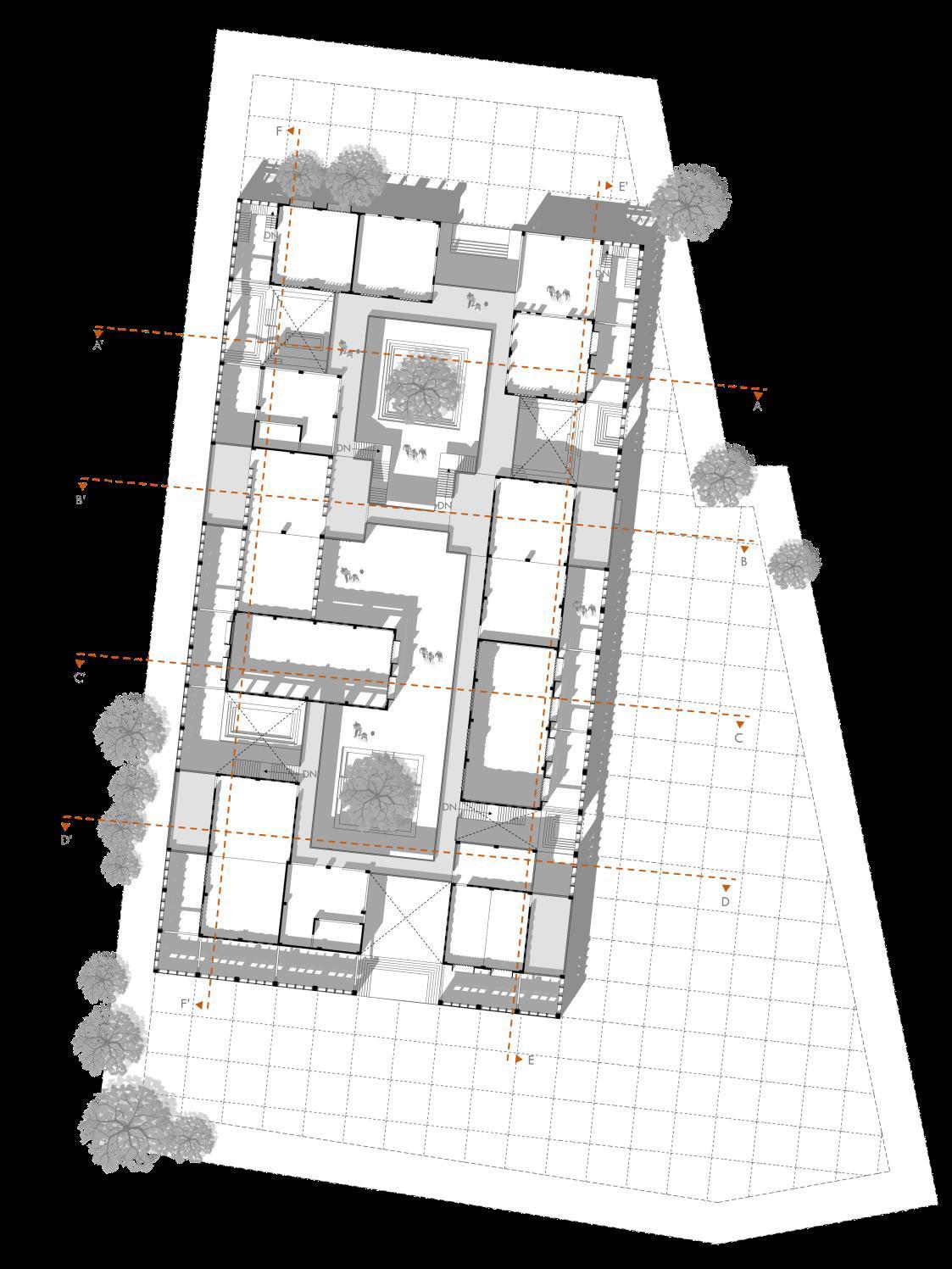 5. The corridor on the top floor connects all the dots i.e. the built, while having the view towards the inner central courtyards