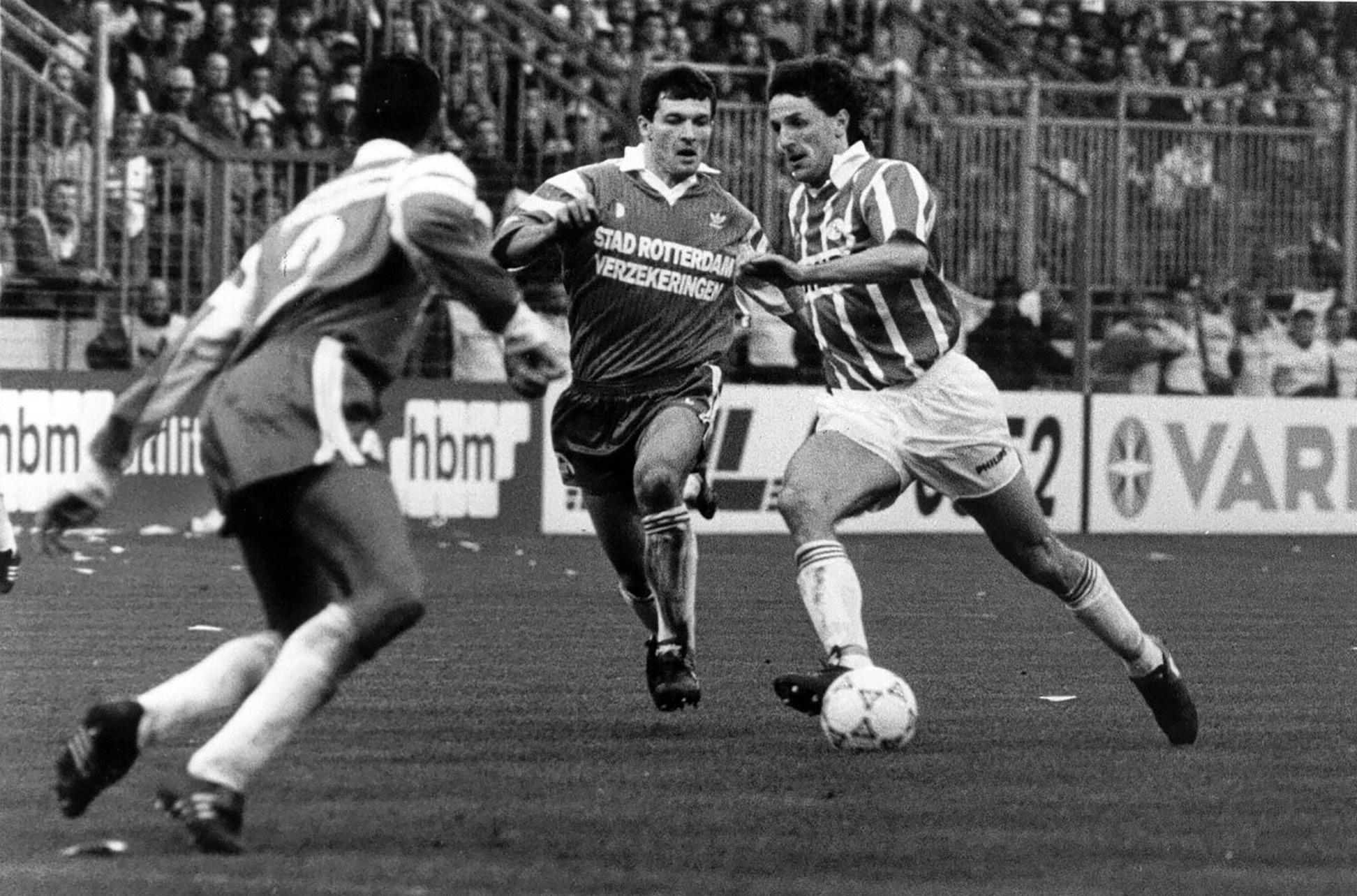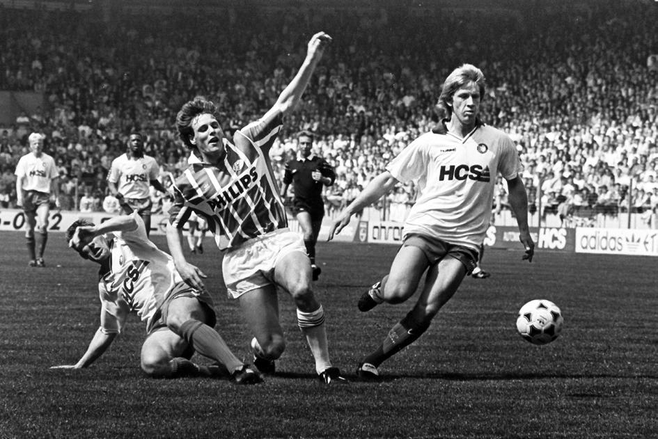 “Elke wedstrijddag begon met een treinreis van Den Haag naar Eindhoven, via Best. In Best moest ik me omkleden, omdat het in Den Haag niet veilig was om als PSV-fan gezien te worden. Die moeite was het meer dan waard. Op de terugweg deed ik hetzelfde. Eenmaal omgekleed in het rood-wit kon ik mijn liefde voor de club vrijuit tonen. Later, toen ik als croupier bij Holland Casino werkte, was het iets makkelijker om mijn PSV-liefde te tonen, met een grap en een grol. Ik wedde bijvoorbeeld jaarlijks met een Ajax-collega voor 25 gulden wie het kampioenschap zou winnen,”