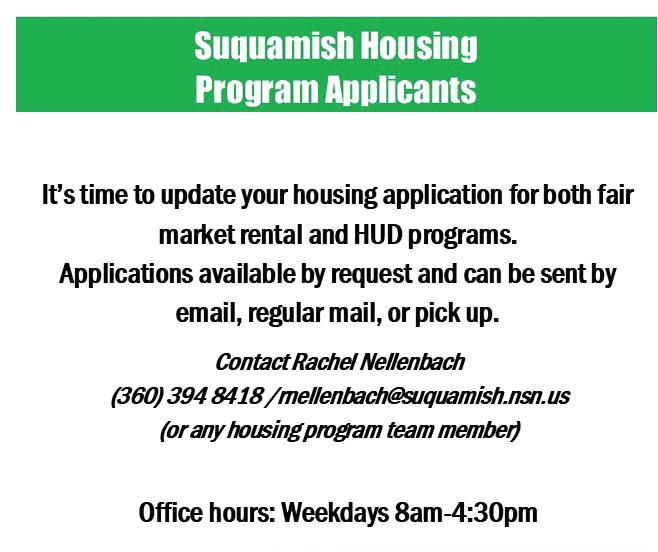Reproduction of Suquamish News, in whole or in part, without written permission from the Suquamish Tribe is strictly prohibited.
