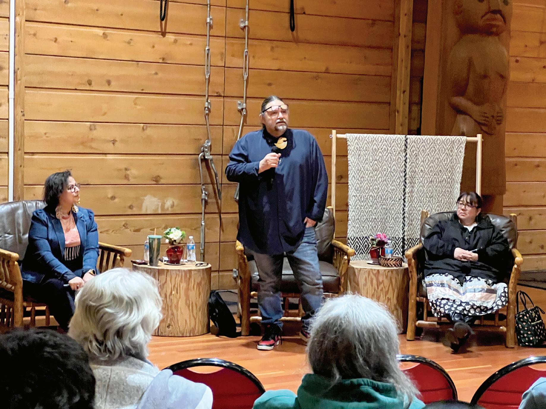 The program, in front of a packed hall, was moderated by Lisa Jackson, Healing of the Canoe Coordinator, with Suquamish Tribal members Vicky Doyle, Robin LW Sigo, director of Research & Strategic Development, and Adam Jackson, TCW case-