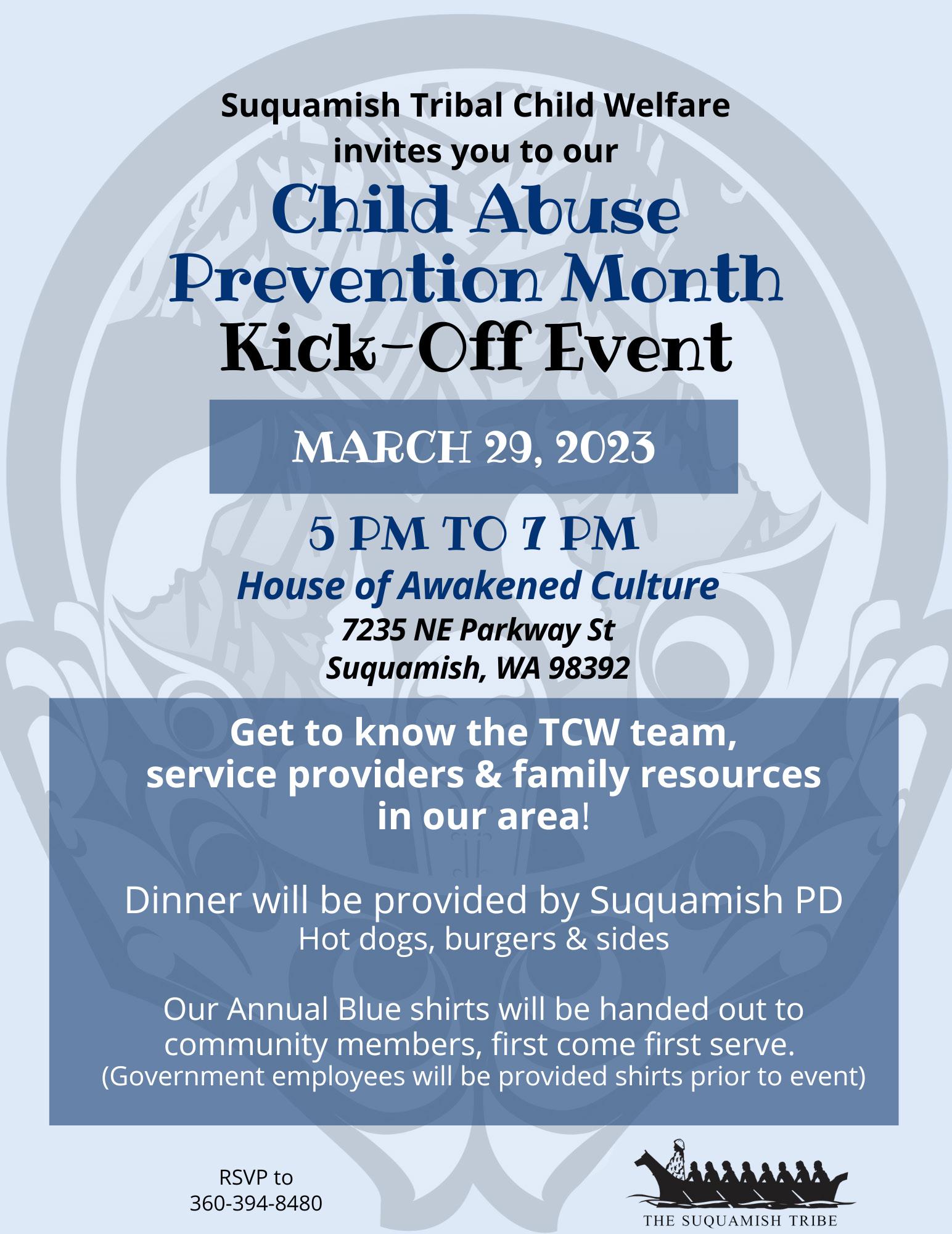 March 24, 12-2:30pm at House of Awakened Culture. Chili cook-off, crafts, information, support group forming. Call Wellness (360) 394-8558 or taxtelle@Suquamish.nsn.us for info.