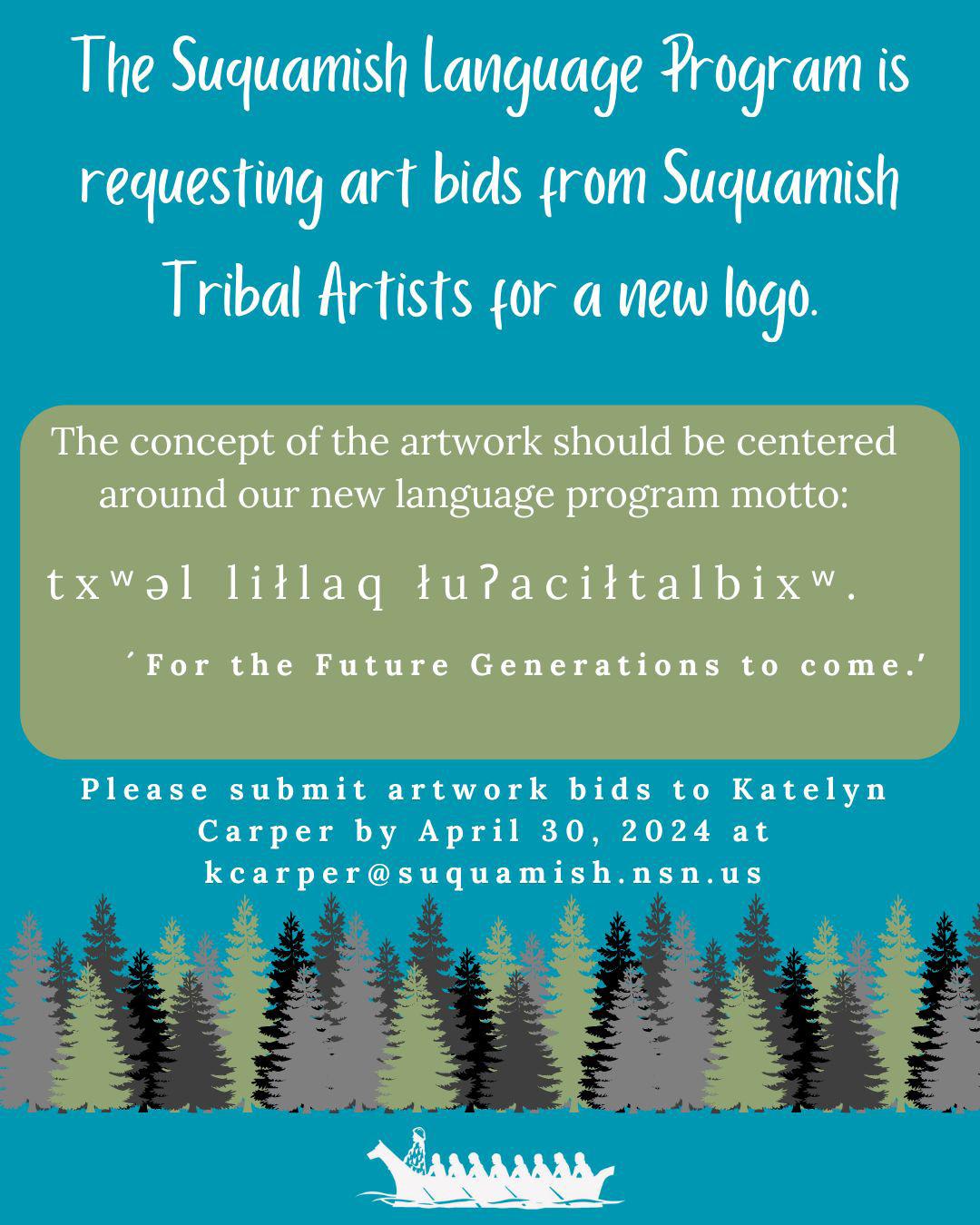 Culture Committee meets April 9, 1-3pm at OTC and online. To add to agenda or attend, email Katelyn Carper at kcarper@suquamish.nsn.us.