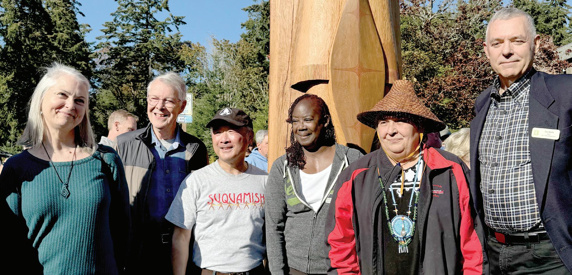Members of the Suquamish Tribe joined hundreds of Bainbridge Island residents, including almost all members of the City Council, to celebrate Suquamish Elder Randi Purser’s welcome pole installed near the Bainbridge Island ferry terminal on Oct. 9.