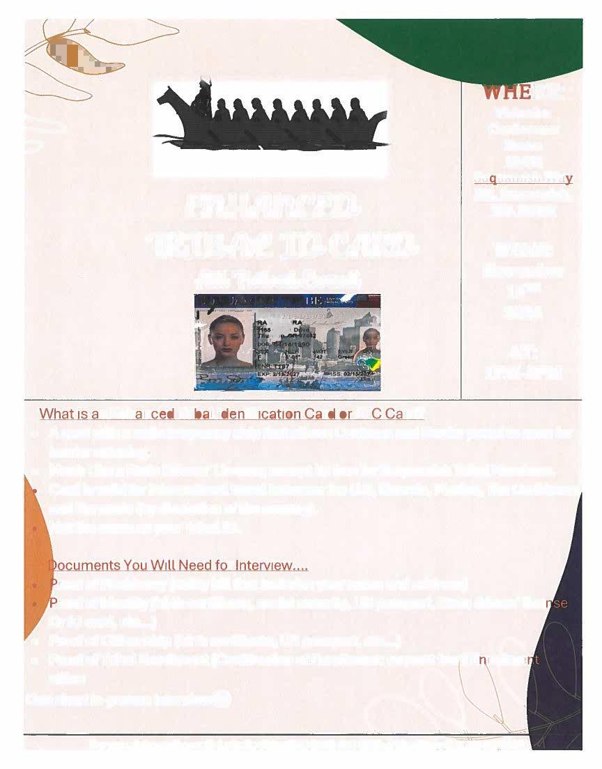 Enhanced Tribal ID Cards Nov. 15, 1-2pm. Fisheries conference room. More info call (360) 394-1332 or (360) 394-8438.