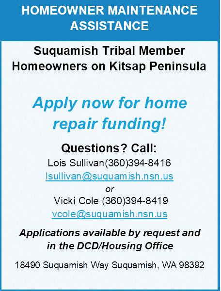 Reproduction of Suquamish News, in whole or in part, without written permission from the Suquamish Tribe is strictly prohibited.