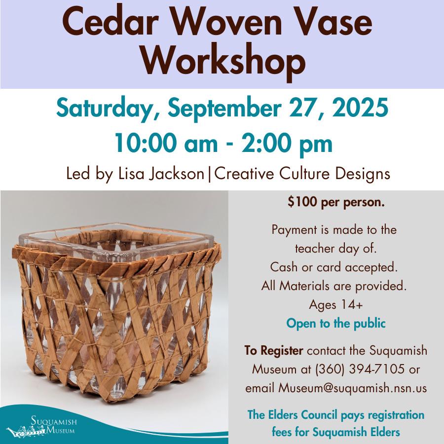 Elders Council meets Sept. 16, 2-4pm.At Elders Lodge, call (360) 3948417 for details.