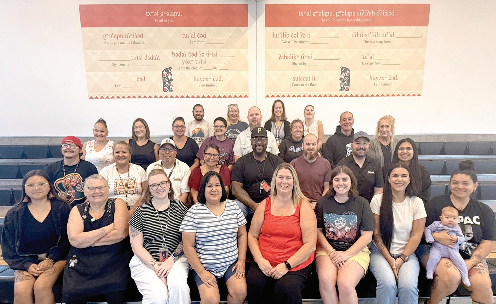 CKA welcomes new staff members (front row), including returning Principal Lucy Dafoe, as the new school year prepares to kick off. New Lushootseed signage is behind them (see story on page 3).