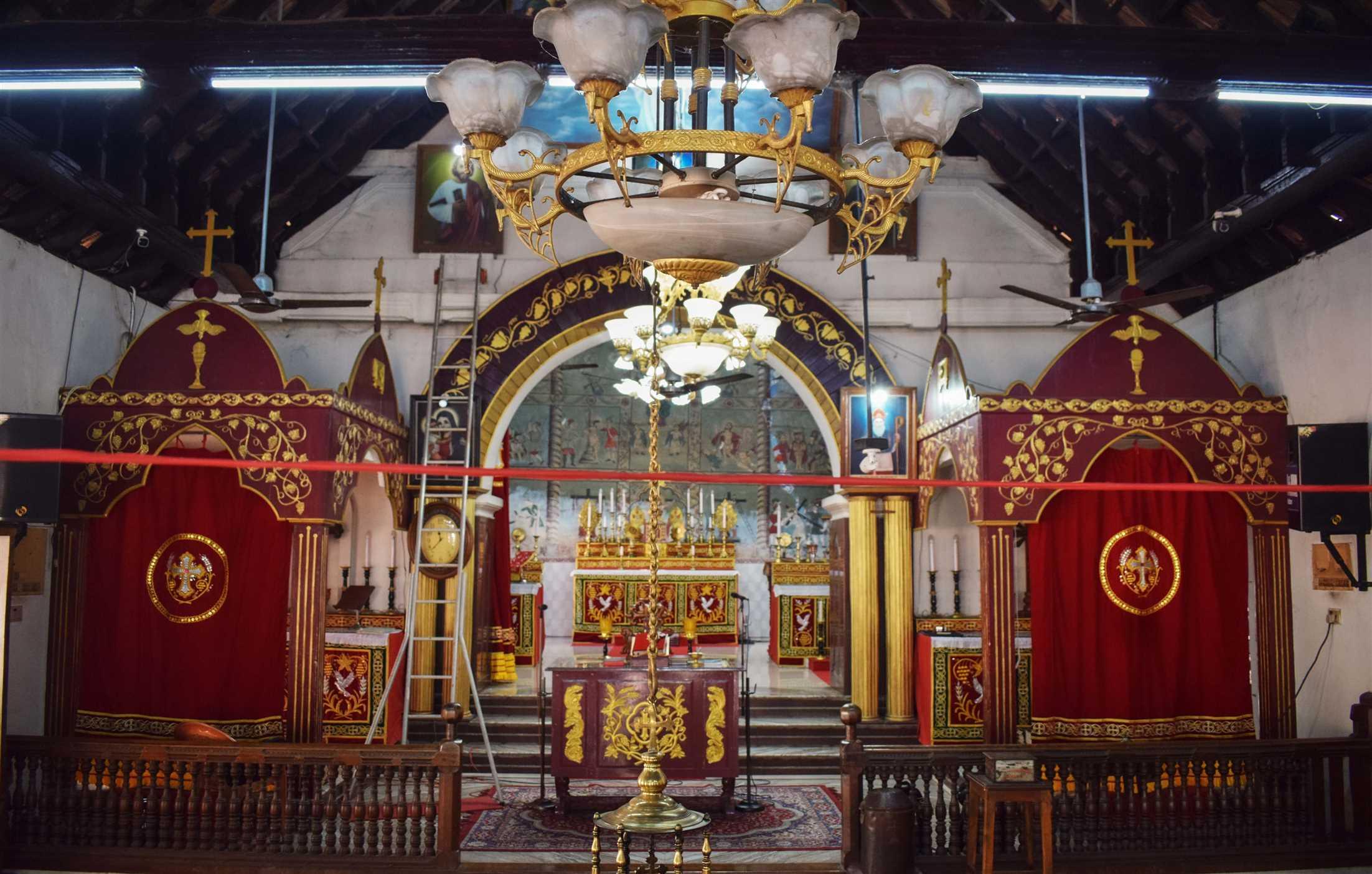 E v e n t h o u g h t h e o l d c h u r c h w a s r e b u i l t i n 1 9 5 2 , t h e a l t a r w a s k e p t i n t a c t b e c a u s e o f t h e M u r a l s . T h e r a r e a n d a t t r a c t i v e p a i n t i n g s o f S t . P a u l w i t h a s w o r d , A n g e l s , J e s u s b e a r i n g t h e C r o s s , J e s u s b e i n g b e a t e n b y s o l d i e r s , S t T h o m a s w i t h a m i n t , A d a m a n d E v e e a t i n g t h e p r o h i b i t e d f r u i t , N o a h ’ s A r k e t c . s h o w s t h e m i x i n g o f m i d d l e e a s t e r n C h r i s t i a n p a i n t i n g a n d K e r a l a ’ s m u r a l a r t w o r k .