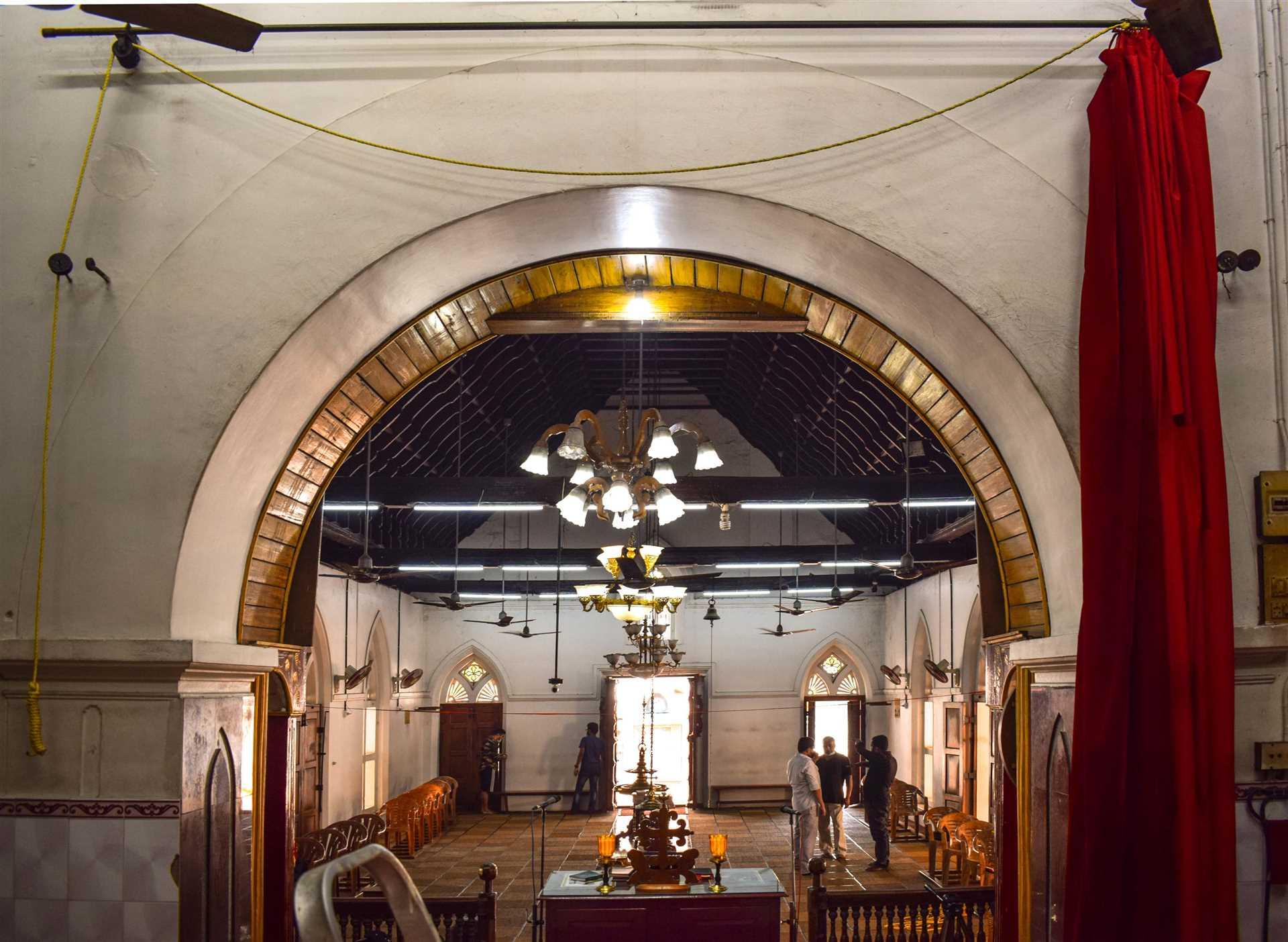 T h e o l d c h u r c h w a s r e b u i l t i n 1 9 5 2 , t h e a l t a r w a s k e p t i n t a c t b e c a u s e o f t h e M u r a l s . T h e m a i n p o r t i c o a n d s u b s i d i a r y p o r c h e s a r e b u i l t a f t e r t h e t r a d i t i o n a l p a t t e r n o f t h e p o r c h e s o f H i n d u t e m p l e . T h e w o o d c a r v i n g s i n t h e p o r c h e s a n d t h e m u r a l p a i n t i n g s w h i c h d e p i c t s t h e g r e a t s c e n e s o f e p i c o f J e s u s C h r i s t a r e u n i q u e a n d r a r e s p e c i m e n s .
