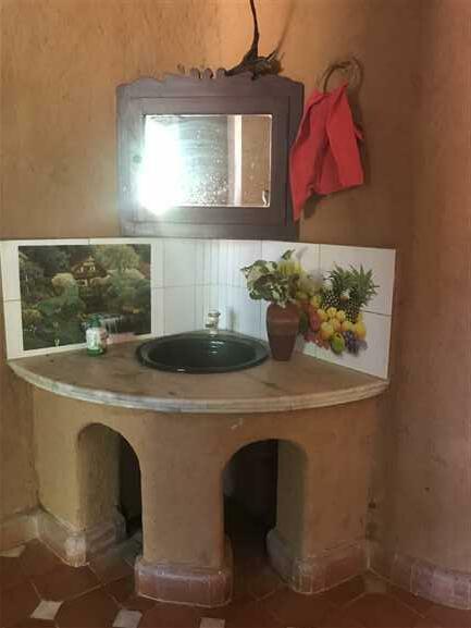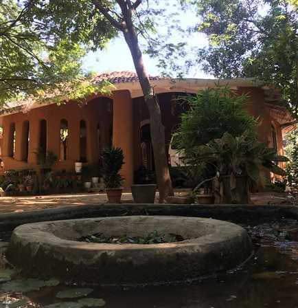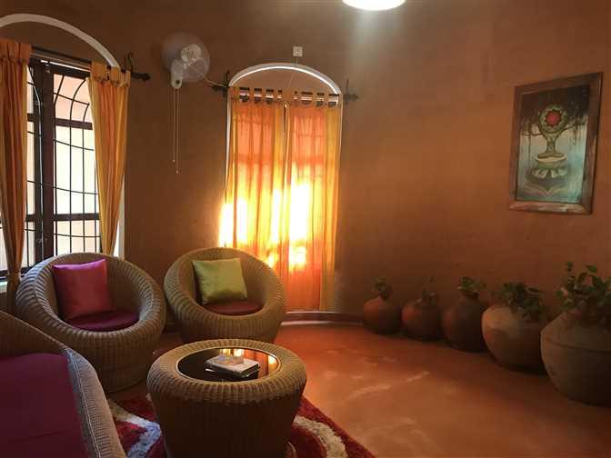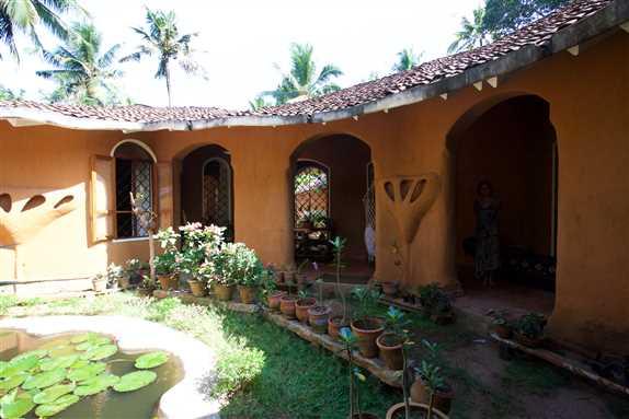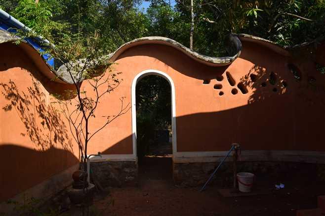 • H i s p a r t i c u l a r h o u s e h a s b e e n b u i l t f r o m m u d d u g o u t f r o m t h e s i t e i t s e l f , w h i c h t a k e s i t a n o t c h h i g h e r o n t h e e c o - f r i e n d l y s c a l e . T h e r e s u l t i n g p i t h a s b e e n c o n v e r t e d i n t o a w a t e r h a r v e s t i n g z o n e .