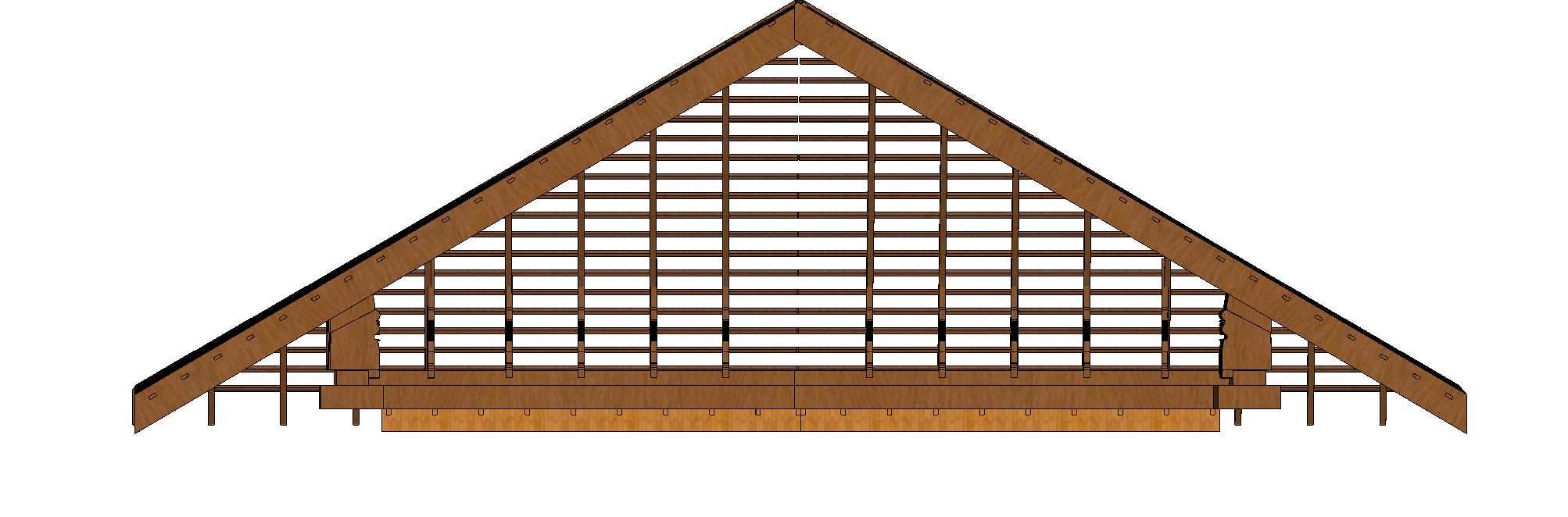 T h e r i b - a n d - s k i n r o o f o f t h e h o u s e i s c l e a r l y v i s i b l e a t t h e e n t r a n c e .