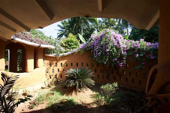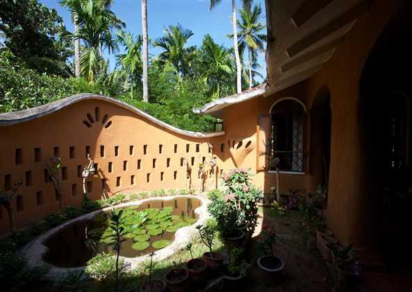t h e o p e n n a t u r e o f t h e p r o j e c t w h e r e e v e r y a r e a o f t h e h o u s e i s e x p o s e d t o n a t u r e ’ s b o u n t y . h e u n d u l a t i o n s o f t h i s m u d h o u s e p a i n s t a k i n g l y s h a p e d b y h a n d .