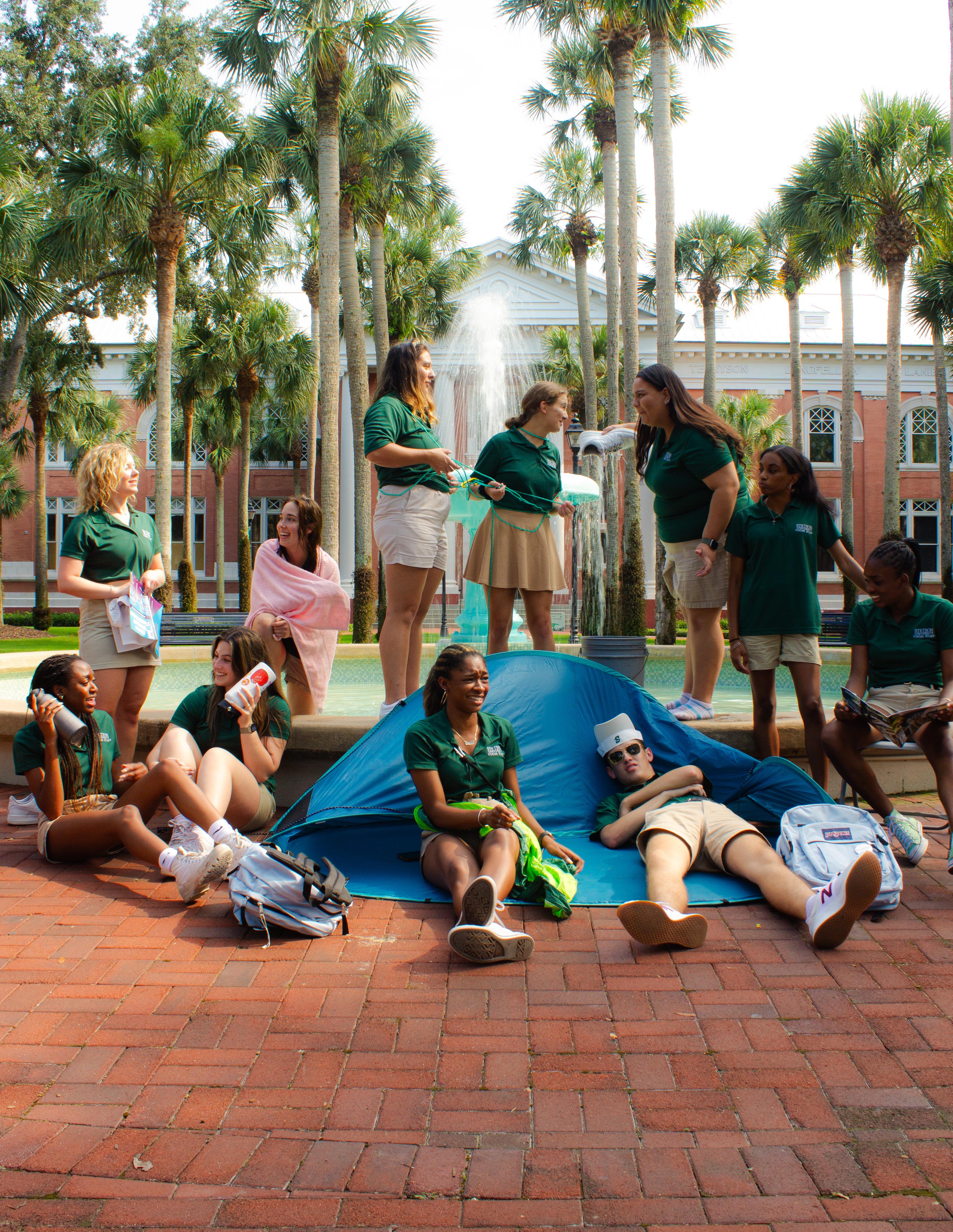 Following the initial check-in and welcome, students and their guests attended breakout sessions. Students had the opportunity to bond with their peers and summer fellows, diving into the Stetson experience and their “goals and dreams as college students” according to the schedule. Meanwhile, guests of students were introduced to the Dean of Students to learn about the best ways to support their Hatter in the upcoming year. The groups then came back together for informative meet-ups with the incoming student’s intended field of study, followed by the official departure of the families for the evening. The remaining students that opted to stay for the overnight experience were invited to a student dinner and pool party celebration.